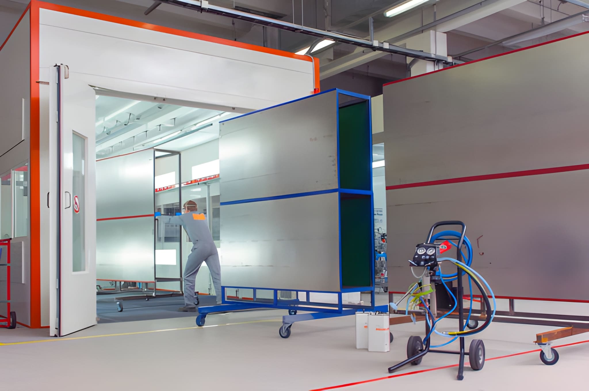 Once the site is ready, the spray booth components are delivered and assembled. This includes structural panels, ventilation systems, lighting units, and filtration components. Each part is installed according to precise specifications to ensure proper alignment and performance.